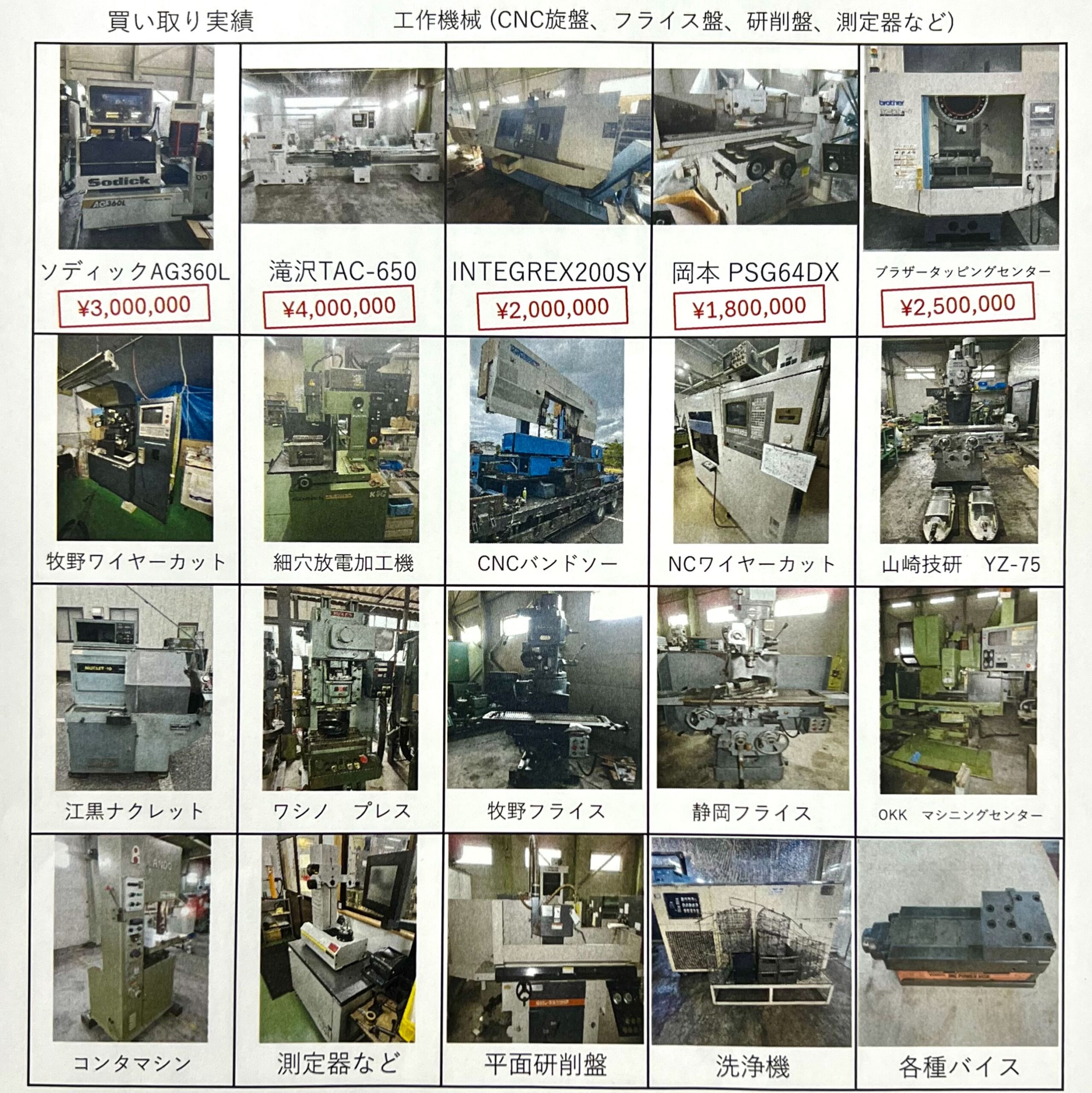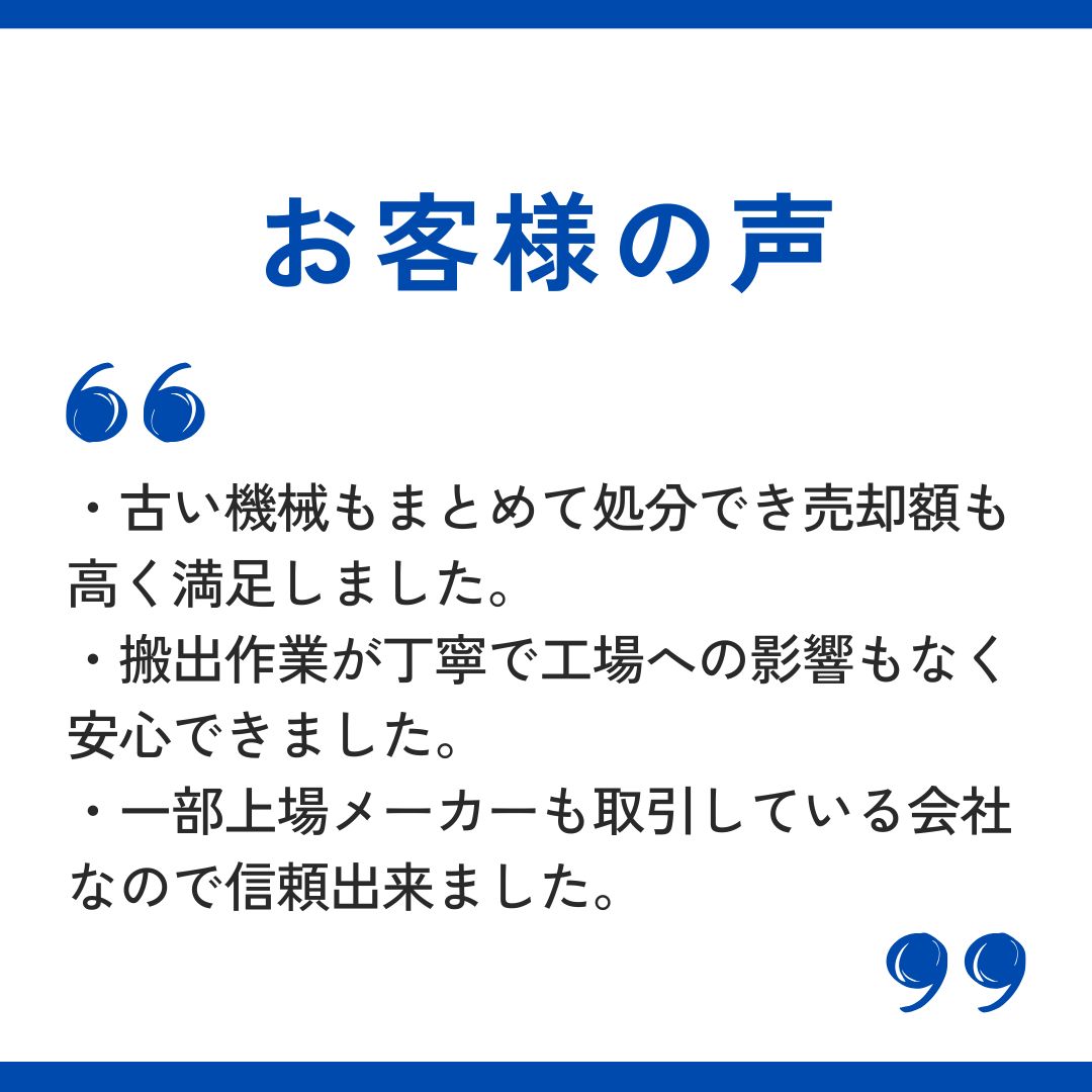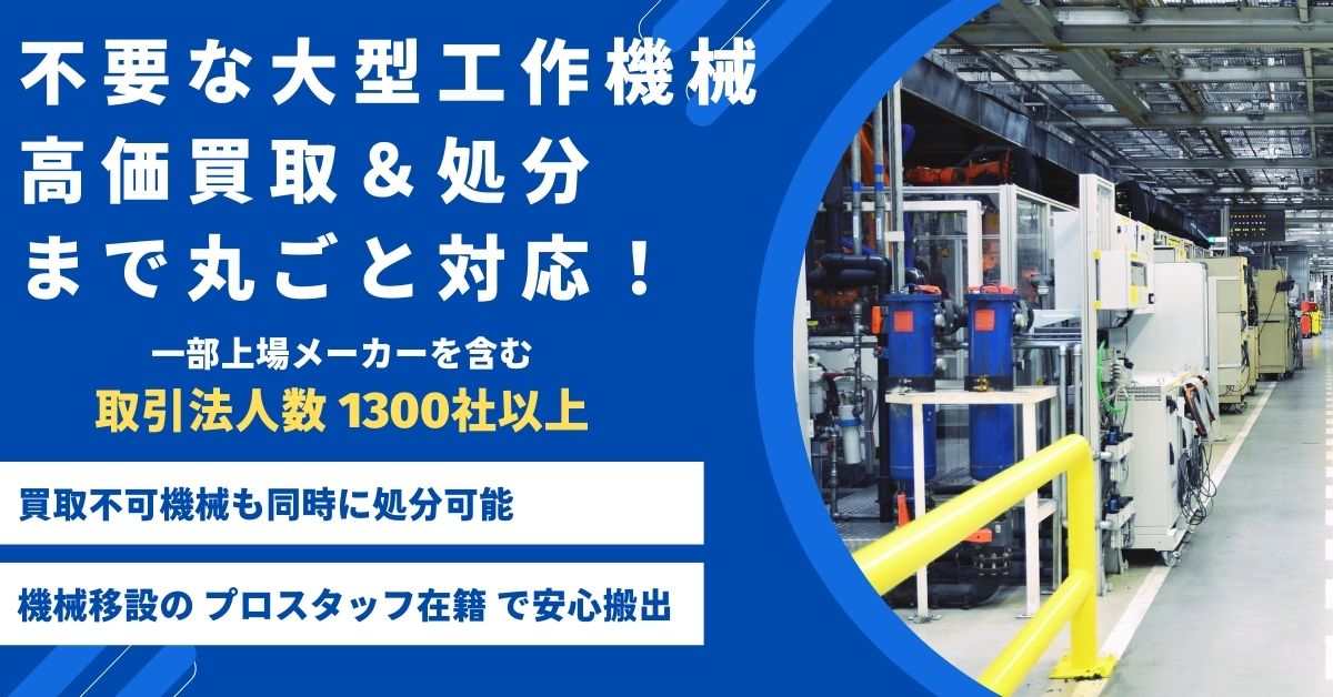中古工作機械の売却・処分は累計取引法人数1300社以上・大手メーカー取引実績・プロスタッフ在籍の当社にお任せ下さい。